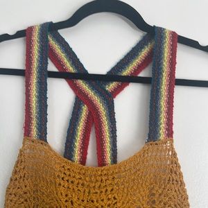 Super fun, bright, rainbow crochet Free People Blouse! Open back detail