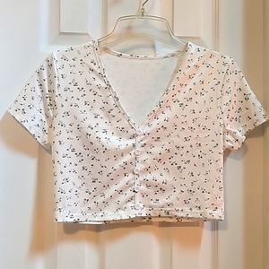 ROMWE Off-White Crop V-Neck Short Sleeve Top