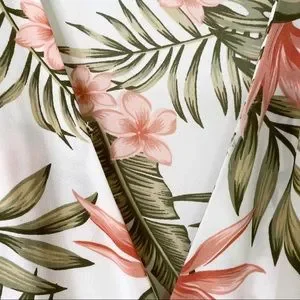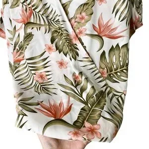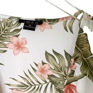 IMAN Palm Floral Tropical HAWAIIAN Resort Faux Wrap Blouse Top Cold Shoulder Med