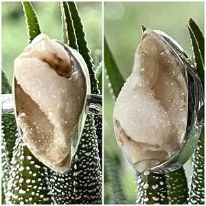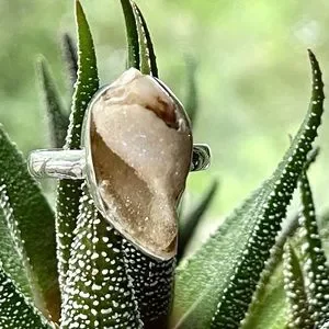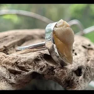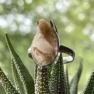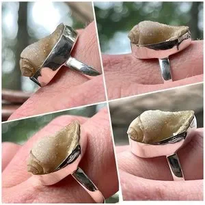 Brand New Genuine Spiralite Fossil Druzy Gemshell Ring - Solid 925 Sterling Silver
