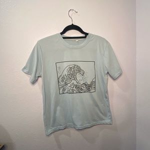 Cotton light blue shirt with wave design on front, never worn.
