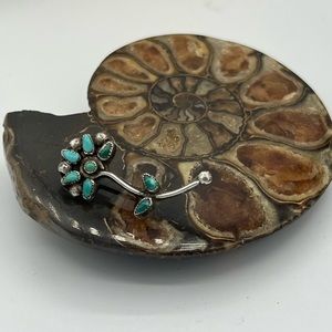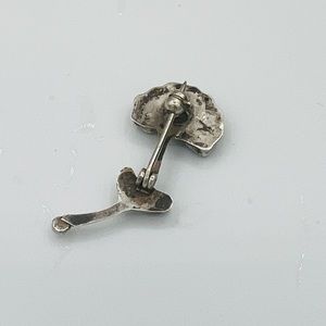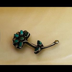 Needlepoint Blossom pin is sweet and petite in size. Height is 1.25”. Marked with an incised “V”. Handmade, each stone is set in sterling ragged edge bezel. weighs 2.5 g. Condition is very good and consistent with age.