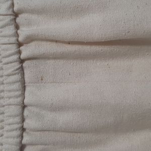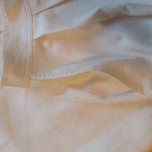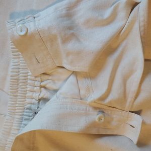 Amazingly versatile vintage cream colored raw silk skirt from 90s label Georgiou Classics. Elastic back waistband and button side closure with pockets. Soft textured finish with natural imperfections; see photos. Made in Cyprus. Vintage size 14/X; please see measurements. GVC - does show natural, but minor, signs of wear typical for a vintage piece, slight tear at top of slit, and mark on bottom back hem; see photos for details.