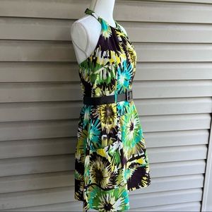 â˘R & K Originals⢠Abstract Floral Belted Halter Dress - Size 12