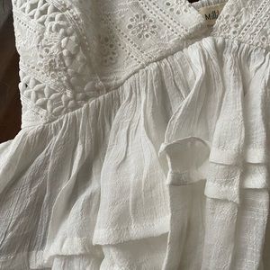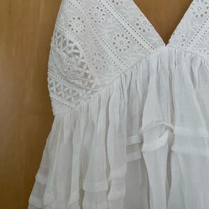 ‼️SOLD OUT‼️Boho Ruffled Babydoll Semi Cropped Flowy White Eyelet Blouse Top