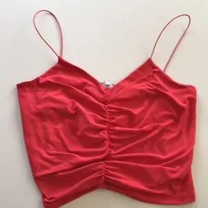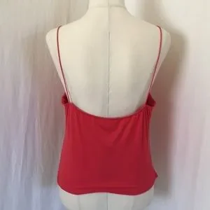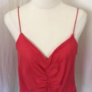 Lovely watermelon red GAZE womens Size L spaghetti strap ruched top. NEW with tags. In stretchy fabric.