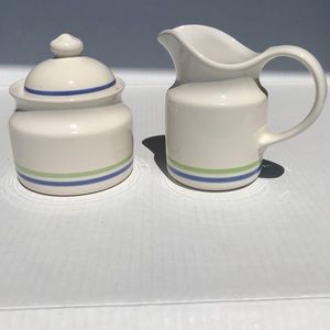 Pfaltzgraff Creamer/Pitcher Sugar Bowl With Lid Stoneware Cloverhill Band