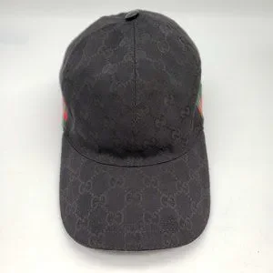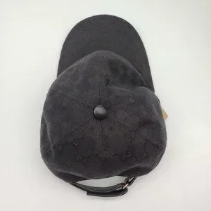 100% Authentic Gucci Cap Black Canvas Leather Hat Unisex