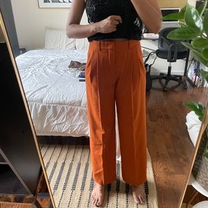 These slacks are stunning and will add a pop to any look! Zara burnt orange wide leg trousers. With built in belt and pockets— worn a handful of times. In good condition.