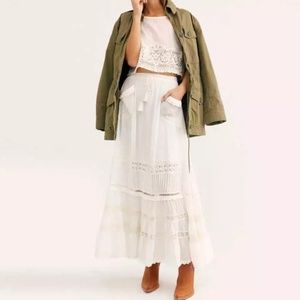 Bohemian White Crochet Lace Maxi Skirt
