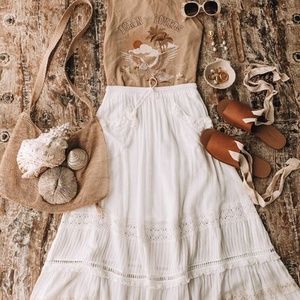Resort summer wedding guest festival date night cruise Bohemian vintage flirty hippie bohemian chic trendy maxi coverup beach tropical vacation coachella dress vintage skirt floral maxi midi ethereal Aurora Frill