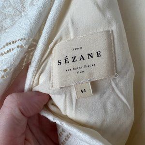 Sézane Livy Dress Parisian Ecru Off White Mix Woven Lace Short Puff Sleeve Mini