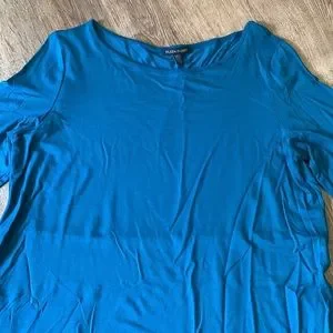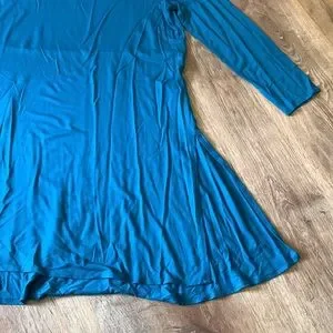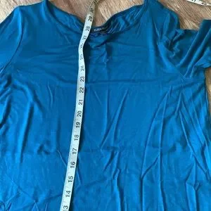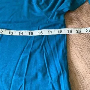Like new condition greenish blue color 3/4 sleeve 95% viscose 5% spandex,last 2 pics are the true color
