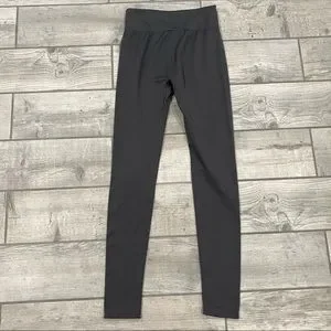 Dark gray high waisted leggings from New Mix. There is no size tag but they fit like a S/M (I wear a women’s medium). GUC, some signs of wear and staining on the knee as shown.