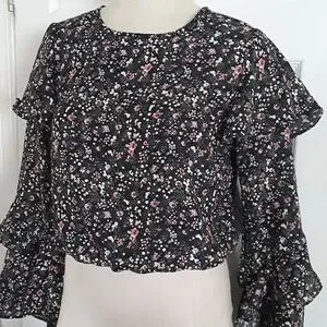 Forever 21 ditzy floral ruffle sleeve elastic waist boho top sz M pretty blouse