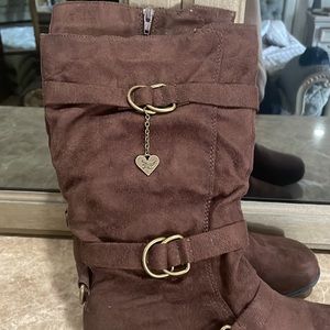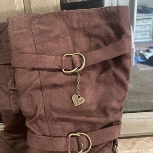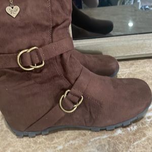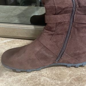 Super comfortable brown faux suede boots!!! These are in great condition and ready for some fall fun!! These have fake buckles that don’t actually buckle. These have zippers to make them easy to put on. These are a size 10