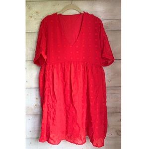 Brand new & never worn, cherry red babydoll mini-dress with jacquard Pom-poms is sweet and sexy! Very figure flattering with a more fitted bust and flowy bottom and vibrant colour! Modest coverage V-neck cut in the front. Perfect for a wedding or holiday! Fits a US 14-16.