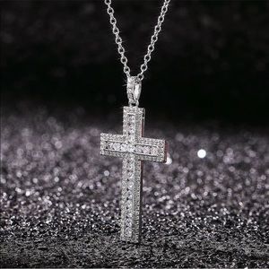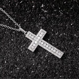 New Luxury 925 Silver Beautiful Cross Diamond Necklace