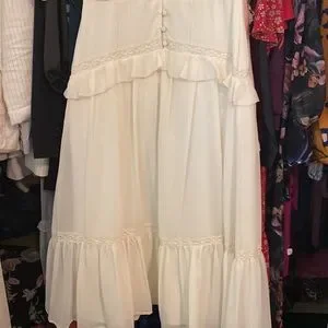 Super cute dress perfect for any event! Never used:( more on the white side than cream but not white white