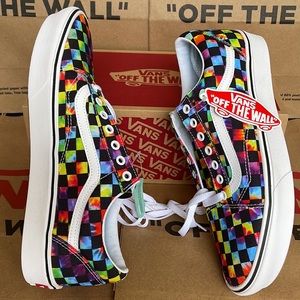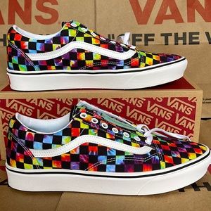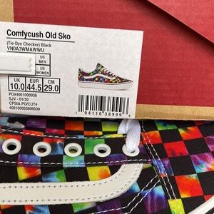New in the box authentic mens Vans Comfycush Old Skool The Tie-Dye Checkerboard Black Sneakers - athletic shoes