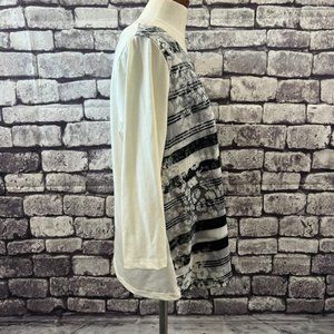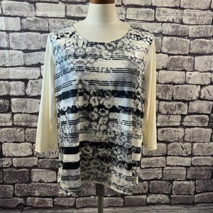 Chico's Zenergy 3/4 Sleeve Blouse Ivory, Black, Gray & Silver Size L