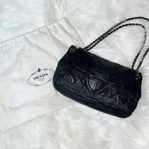 Prada Black Nappa Gaufre Chain Shoulder Bag