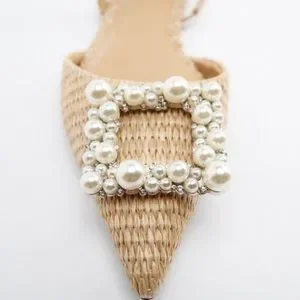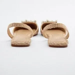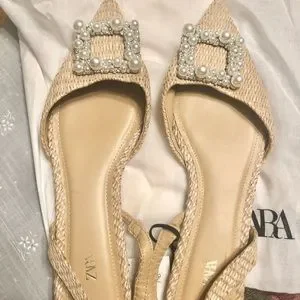 Zara pearl embellished flat slingbacks NWT
