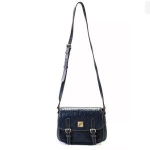dooney and bourke retro embossed blue leather Safari crossbody Bag