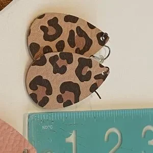Three pairs of earrings. Leopard, pink pebbled, & brown. Sizes shown in pics.