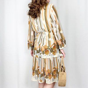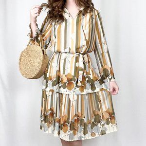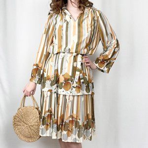 Stunning Vintage Mid Century Modern Pleated Striped Dress Oversized Set 50s 60s