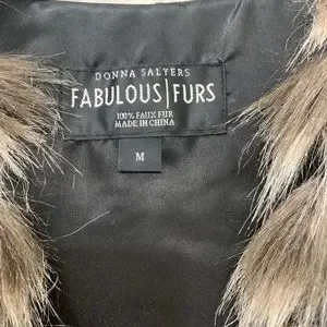 Donna Salyers Fabulous Furs size medium faux fur vest. Super cute open front long fur vest. Ends below waist. Length from shoulder seam 30”