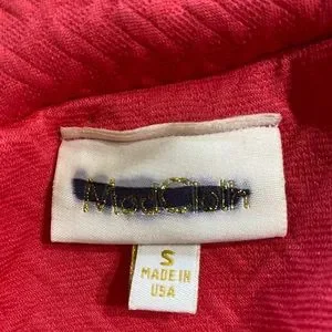 This is such a sweet dress! The brand tag has been makes through to prevent returns. Looks great off shoulder. Textured is tone in tone. Color can look darker in the photo. No fabric tag. Lovely! No flaws. Size S