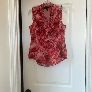Beautiful White House Black Market pink floral top with tie front! The top is in great condition and only worn a couple of times. Can tie front or leave untied. Size XS.