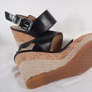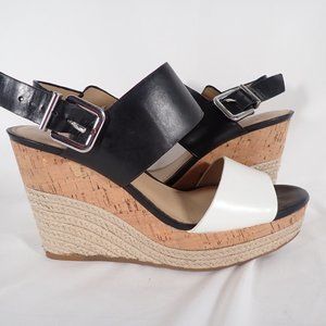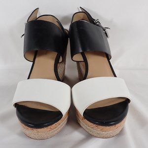Antonio Melani 9M Woman's Leather Black and White Cork/Jute Wedge sandals.