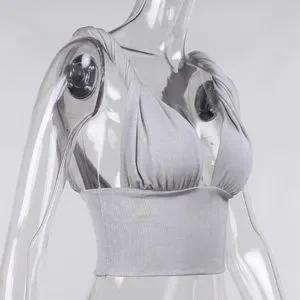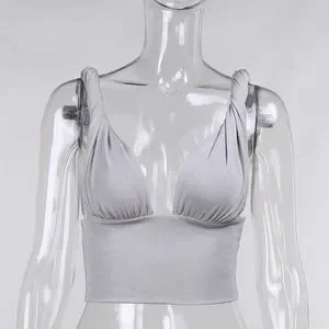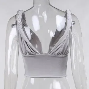 •Cropped, deep V neck, with twisted strap
