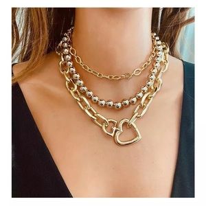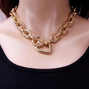 1pcs Zara Openable Lock Carabine Hook Heart Shape Pendant Gold Link chain Necklace