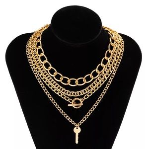 🆕 Gold Chain Abstract Key Layered Necklace Set