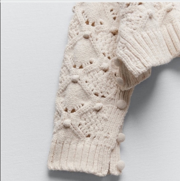 Zara * Cable Knit Sweater With Buttoned Cuffs