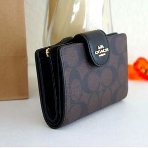 NWT Coach Medium Corner Zip Wallet In Signature Canvas