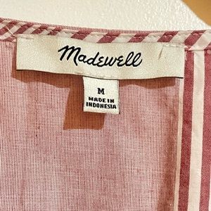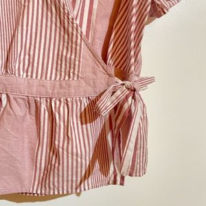 Red Stripe Ruffle Hem Short Sleeve Wrap Cotton Blouse Top by Madewell.
