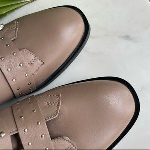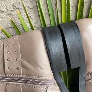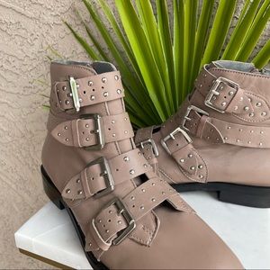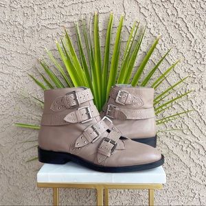 TOPSHOP NWOT Taupe Gray Tan & Silver Studded Buckle Amelia Paige Combat Boots Booties