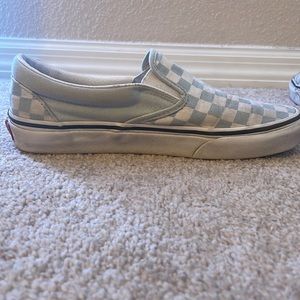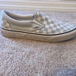 Size 8.5 woman’s light blue checkered slip-on vans