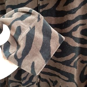 Threehearts Zebra Striped Velour Jacket, super soft, long Sleeve, zipper front, to front side pockets.
