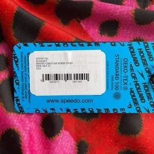 Inspired by this season’s obsession with all shades of animal, the Bright Cheetah Stripe Pants feature a vibrant red and pink stripe printed atop Speedo’s signature ECO swim fabric that features recycled PET yarn.