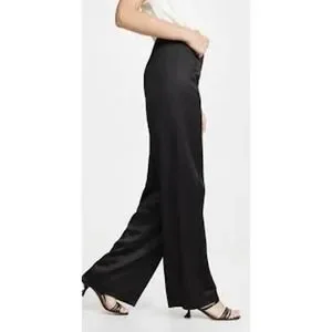NWT Theory Calvan M Satin Wide Leg Pants 12 Black Women's Trousers