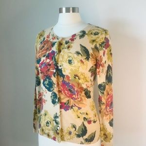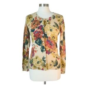 Talbots 100% Floral Button Down Crewneck Cardigan Sweater. 100% Cashmere. Multicolor. Size Small. New condition - see photos for best representation of item condition.