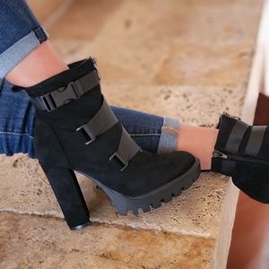 Women's Platform Ankle Boots Chunky Heel Boots Black Color