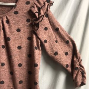 Adrienne Vittadini mauve heather gray polka dot blouse medium