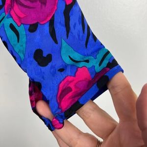 Vintage 80 A.J. Bari Blue Silk Party Dress Animal Print Floral Bow Designer Sz 6