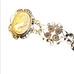 Antique Abalone Cameo Wire work Filagree Green Murano glass Italy Bracelet